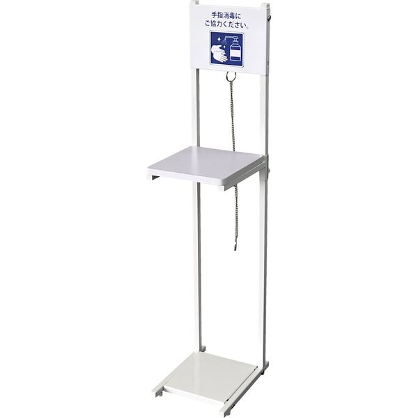 | 商品の特徴 | スタンド高さ調節できます。可能難抑止チェーン・重り用棚×各1付き付属のチェーンで消毒液を繋げたり、設置場所の固定にも使えて便利。手指洗浄の消毒液設置のほか、天板サイズも広く、内線電話、小物の設置として多用途に使えて便利です。 ※消毒液及び消毒容器は付いていません。 | ||