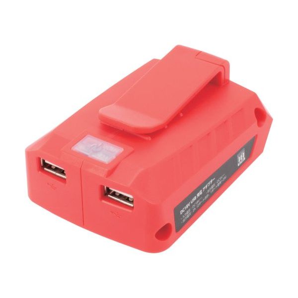 | 商品の特徴 | ●DC18Vシリーズのバッテリー(2.0Ah、4.0Ah)に取り付けることで、スマートフォンなどを充電できます。●電源ボタンを1秒長押しすることで、電源ボタンが赤色に点灯して充電を開始します。●充電していない状態(出力が0.02A未満の状態)が、10秒続くと、自動で電源がOFFになります。●ベルトフック付●自動パワーOFF機能 | ||