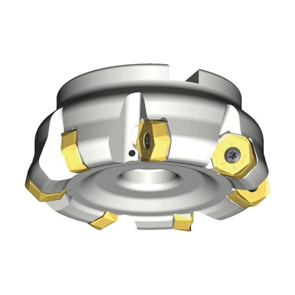 | 商品の特徴 | ●12コーナー使用可能な6角形のハイポジ切れ刃を採用しました。●45度リード・12コーナー使いフライス工具 | ||