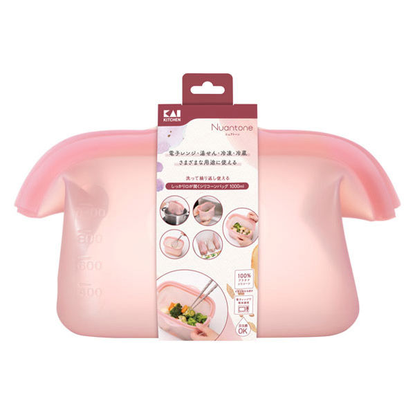 保存容器 シリコーンバッグ大きく開く1000ml オールドラズベリー 000DH6315 1個 レンジ料理 食洗機使用可 貝印