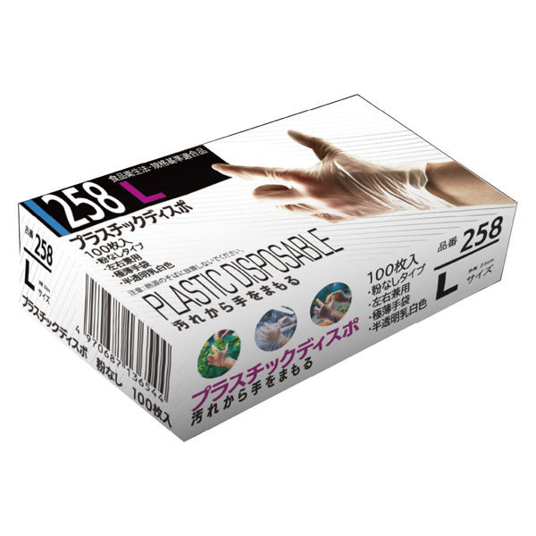 おたふく手袋 プラスチックディスポ粉無Lサイズ 100枚入 #258 1セット(100枚入)(直送品)