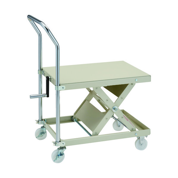 | 商品の特徴 | ●昇降機構はスクリュー式(台形ねじ使用)のため、油圧式のようなテーブル面の自然下降はありません。●昇降式・簡易リフターです。●自在ストッパー付キャスター、固定キャスター各2個 | ||