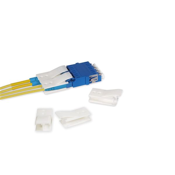 | 商品の特徴 | ●同時に抜き差しできるLCコネクタ2連用固定具●LCコネクタ2つを1つにまとめることができ、同時に抜き差しできる2連用クリップです。●送信用・受信用として2つのLCコネクタを使い分ける場合、誤接続や誤抜去の防止に繋がります。●クリップの厚みが薄いため、干渉せずにLCアダプタ高密度ポートへ上下に並べて取り付け可能です。また、装着済みLCコネクタへの後付けも容易です。●酸素指数28%の原材料を採用しており、難燃性に優れています●- | ||
