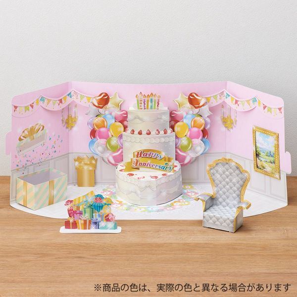 - ●あなたの「推し」を思う存分楽しみ撮影できる、立体感のあるポップアップ式専用スタジオです。ミシン目入りの台紙をカットし、両面テープなどで貼り付ければ、立体感のある撮影スタジオが完成します。左右にも背景があるので、正面、斜めからなど、お好みの角度で撮影することができます。撮影後は、折り畳んでコンパクトに収納できます。付属のペーパー小物は、椅子、プレゼント、メッセージ、王冠、ローソク、BOX、額縁(お好きな写真などを入れることができます)などです。○必要なもの:両面テープ(10~12mm幅程度)、はさみ※クロバー両面テープ<12mm>(58-512)がおすすめです。○あると便利なもの:ピンセット、カッティングマット●内容物:台紙(スタジオ:1枚、小物用:5枚)/作り方説明書完成サイズ(約)幅520×高さ210×奥行き180mm材質:紙