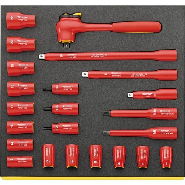 | 商品の特徴 | ●プラスチックケース入り。●追加セット96830278が利用可能●セット内容:●絶縁ラチェットハンドル:12165VDE絶縁ソケット:12171VDE-7・8・9・10・11・12・13・14・16・17・18・19・20・22絶縁トライスクエアビットソケット:12175VDE-XZNM8・10絶縁ヘクスローブビットソケット:12174VDE-T20・25・30絶縁エキステンションバー:12167VDE-3・6・10 | ||