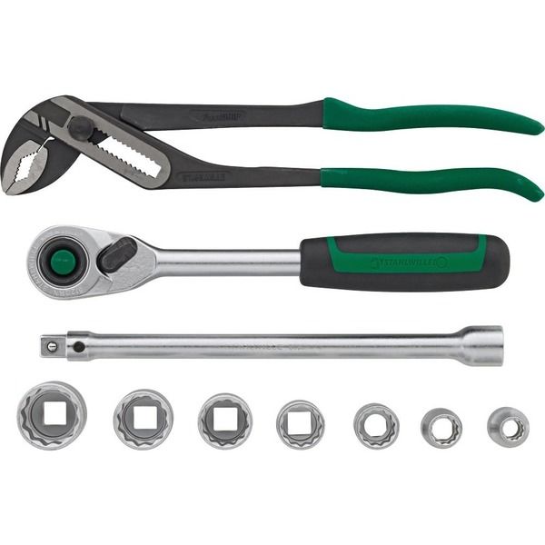 | 商品の特徴 | ●10点ツールセット。●トレイ付きのツールセット。●セット内容:●ラチェットハンドルエクステンションバーソケット10・13・17・19・22・24・27mmウォーターポンププライヤー | ||