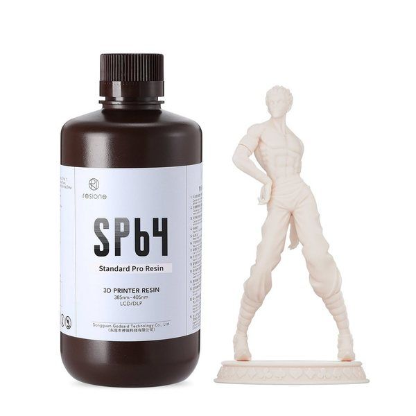 | メーカー名 | RESIONE | 商品仕様1 | ●SP64スタンダードプロレジンは、低収縮かつ高いディテール再現性を備え、マットな高級感のある仕上がりが特長です。安定した印刷性と後処理の手軽さで、あらゆる造形用途に最適です。収縮・変形がほとんどないマット仕上げで高級感のある質感鮮明なシャープディテール調整不要で使いやすい安定した造形品質後処理時間を短縮低吸水性で長期保存も安心1.低収縮・高い印刷安定性十分な剛性と低い吸水率により、反りやひび割れを抑制。大型フィギュアからミニチュアまで、形状・機械特性を安定して維持します。2.マット仕上げでディテールを際立たせる高い遮光性によるマットな表面は、凹凸や欠陥が見やすく、後加工(研磨・塗装)が効率的。繊細なディテールを鮮明に再現します。3.後処理が簡単IPA(イソプロピルアルコール)などで手早く洗浄でき、乾燥後も表面はべたつきません。薄肉や細長構造も損傷しにくく、安心して取り扱えます。4.超微細サポートに対応独自配合により強度を保ちつつ、サポート径0.1~0.15mmの微細サポートも使用可能。除去や研磨が容易で、後処理をさらにスピーディーにします。5.幅広い互換性主流のLCD/MSLA/DLP方式プリンターにプリセット不要で対応。初めての方でもすぐに高品質な造形が始められます。 |