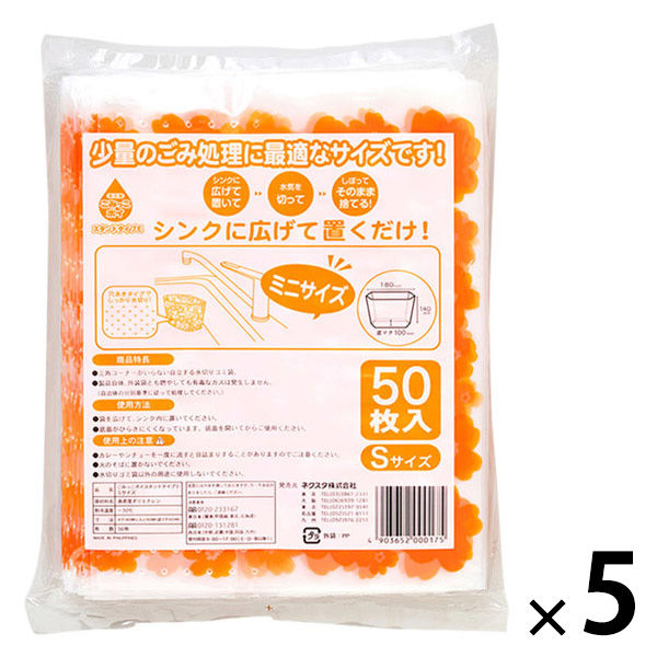 ごみっこポイ 自立型 水切りゴミ袋 スタンドタイプ E Sサイズ オレンジ 1セット(1袋(50枚入)×5)ネクスタ
