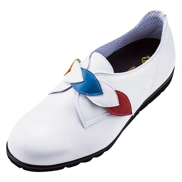 | 商品の特徴 | 色や素材にこだわった葉っぱのデザインの甲ベルトは、面ファスナーで微調整できます。厚手と薄手の2種類のカップインソールが付いています。 | ||