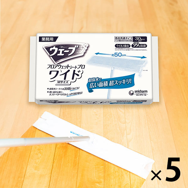 業務用 ウェーブ フロアワイパーフローリングワイパー ウェットシート ワイドサイズ M 1セット(30枚入×5パック)ユニ・チャーム ウイルス除去・99%除菌