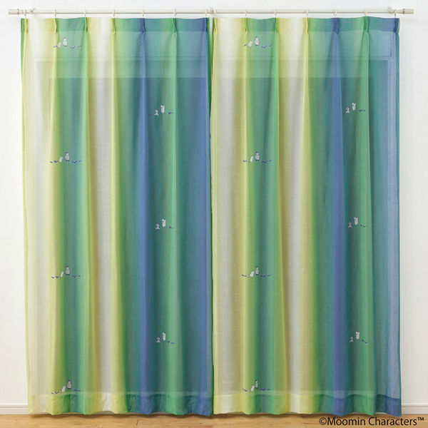 SUMINOE MOOMIN カーテン オーロラボイル A1047 幅1000×丈1330mm ブルーグリーン 1枚(直送品)