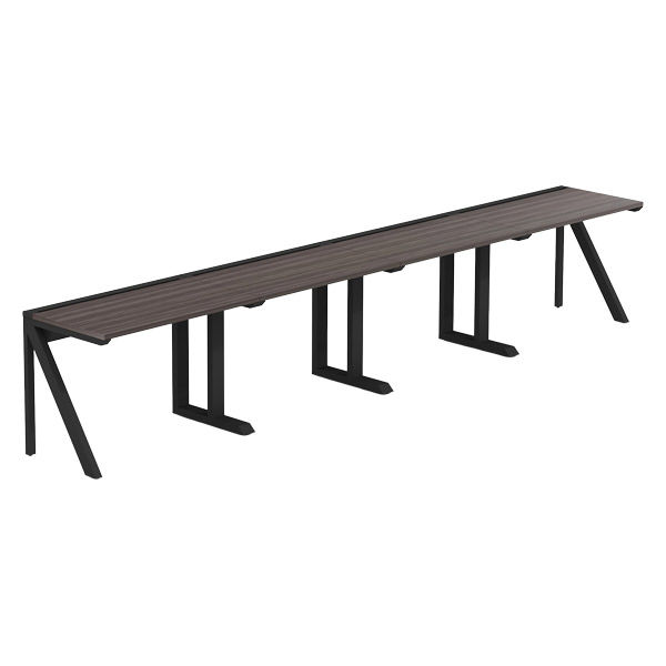 【軒先渡し】LASHデスク ラッシュハーフレッグ 幅4000×奥行600×高さ720mm ダークアッシュ天板/ブラック脚 1台(直送品)