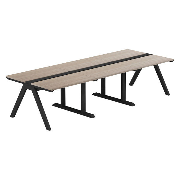 【軒先渡し】LASHデスク ラッシュホールレッグ 幅3000×奥行1200×高さ720mm オーク天板/ブラック脚 1台(直送品)