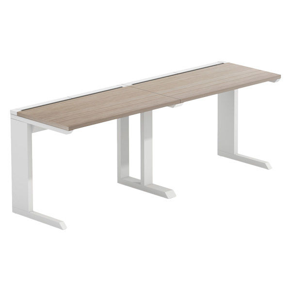 【軒先渡し】LASHデスク ティーレッグハーフ 幅2000×奥行600×高さ720mm オーク天板/ホワイト脚 1台(直送品)