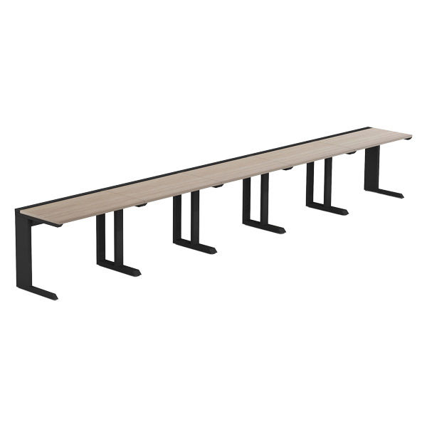 【軒先渡し】LASHデスク ティーレッグハーフ 幅5000×奥行600×高さ720mm オーク天板/ブラック脚 1台(直送品)