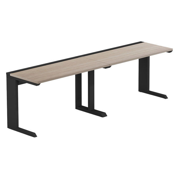 【軒先渡し】LASHデスク ティーレッグハーフ 幅2400×奥行600×高さ720mm オーク天板/ブラック脚 1台(直送品)