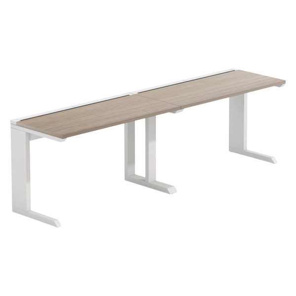【軒先渡し】LASHデスク ティーレッグハーフ 幅2400×奥行600×高さ720mm オーク天板/ホワイト脚 1台(直送品)