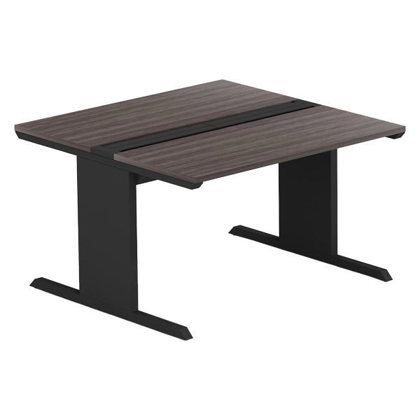 【軒先渡し】LASHデスク ティーレッグホール 幅1200×奥行1200×高さ720mm ダークアッシュ天板/ブラック脚 1台(直送品)