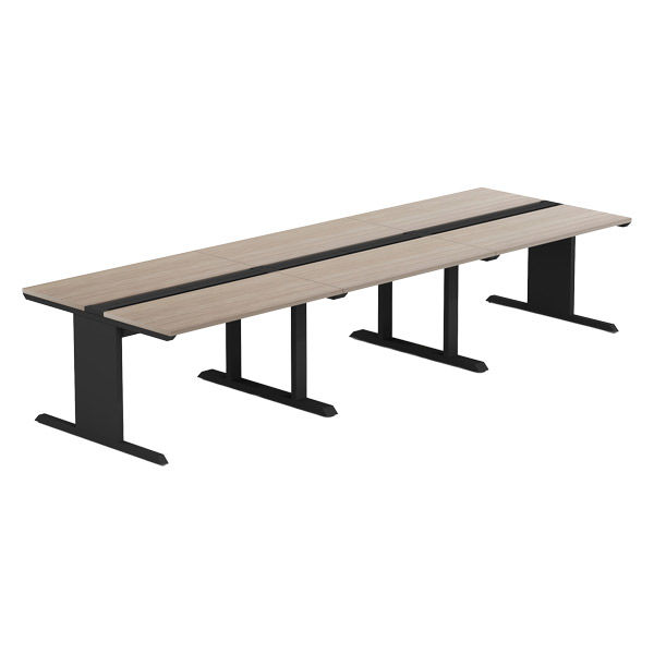 【軒先渡し】LASHデスク ティーレッグホール 幅3600×奥行1200×高さ720mm オーク天板/ブラック脚 1台(直送品)