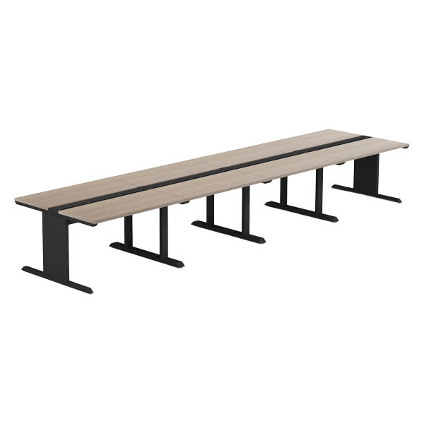 【軒先渡し】LASHデスク ティーレッグハーフ 幅4800×奥行600×高さ720mm オーク天板/ブラック脚 1台(直送品)