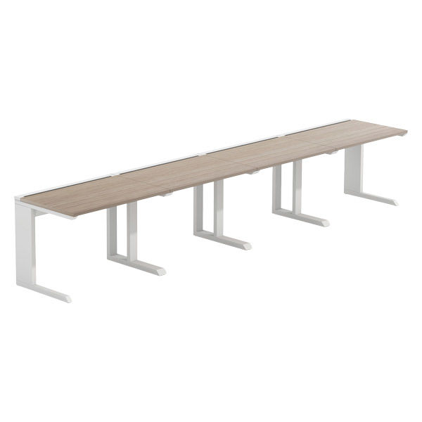 【軒先渡し】LASHデスク ティーレッグハーフ 幅4000×奥行700×高さ720mm オーク天板/ホワイト脚 1台(直送品)