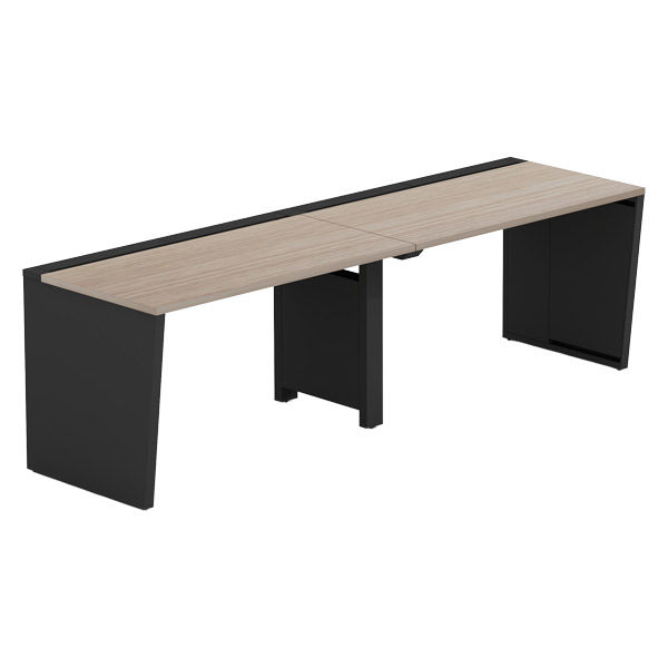 【軒先渡し】LASHデスク ベンチハーフ脚 幅2400×奥行700×高さ720mm オーク天板/ブラック脚 1台(直送品)