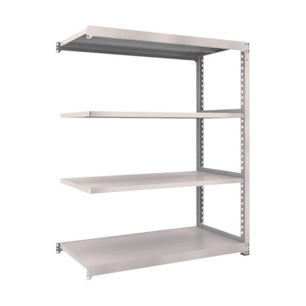 | 商品仕様1 | ●ボルトを1本も使用していないボルトレス構造で、分解・組み立てが簡単。組立作業の時間を大幅に短縮できます。●棚の段変更が、25mmピッチで、自由に調整、変更ができます。●高さ、奥行が同じであれば、増結することができます。また、支柱を兼用することにより、コストダウンが図れます。●優れた断面構造で、荷重、横からのねじれにも強いC型形状の支柱を採用しています。●樹脂ベースの使用により、床を傷つけません。●M3型中量棚1500X721XH21004段連結NG●セット内容:●支柱2本・ビーム4本・棚板4枚・中棚受6個・天棚受2個 | タイプ | 連結型 |