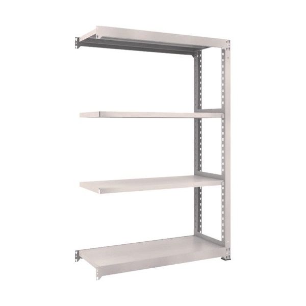 | 商品仕様1 | ●ボルトを1本も使用していないボルトレス構造で、分解・組み立てが簡単。組立作業の時間を大幅に短縮できます。●棚の段変更が、25mmピッチで、自由に調整、変更ができます。●高さ、奥行が同じであれば、増結することができます。また、支柱を兼用することにより、コストダウンが図れます。●優れた断面構造で、荷重、横からのねじれにも強いC型形状の支柱を採用しています。●樹脂ベースの使用により、床を傷つけません。●M3型中量棚1200X471XH21004段連結NG●セット内容:●支柱2本・ビーム4本・棚板4枚・中棚受6個・天棚受2個 | タイプ | 連結型 |