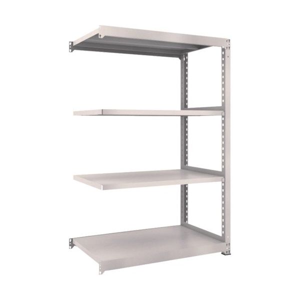 | 商品仕様1 | ●ボルトを1本も使用していないボルトレス構造で、分解・組み立てが簡単。組立作業の時間を大幅に短縮できます。●棚の段変更が、25mmピッチで、自由に調整、変更ができます。●高さ、奥行が同じであれば、増結することができます。また、支柱を兼用することにより、コストダウンが図れます。●優れた断面構造で、荷重、横からのねじれにも強いC型形状の支柱を採用しています。●樹脂ベースの使用により、床を傷つけません。●M3型中量棚1200X721XH21004段連結NG●セット内容:●支柱2本・ビーム4本・棚板4枚・中棚受6個・天棚受2個 | タイプ | 連結型 |