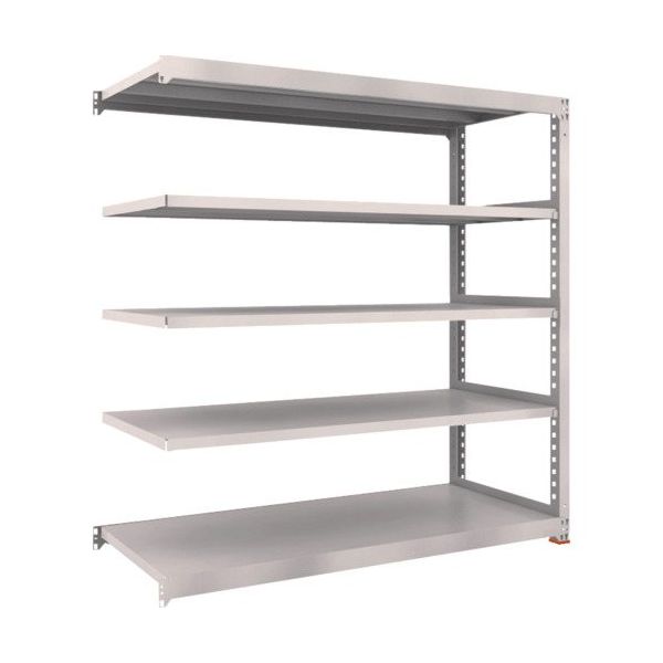 | 商品の特徴 | ●ボルトを1本も使用していないボルトレス構造で、分解・組み立て作業が簡単で、作業時間を大幅に短縮できます。●棚の段変更が、25mmピッチで、自由に調整、変更ができます。●高さ、奥行が同じであれば、増結することができます。●また、支柱を兼用することにより、コストダウンが図れます。●優れた断面構造で、荷重、横からのねじれにも強いC型形状の支柱を採用しています。●免震樹脂ベースは滑り低減による免震機能を有しており、積載物の落下リスクを低減します。 | ||