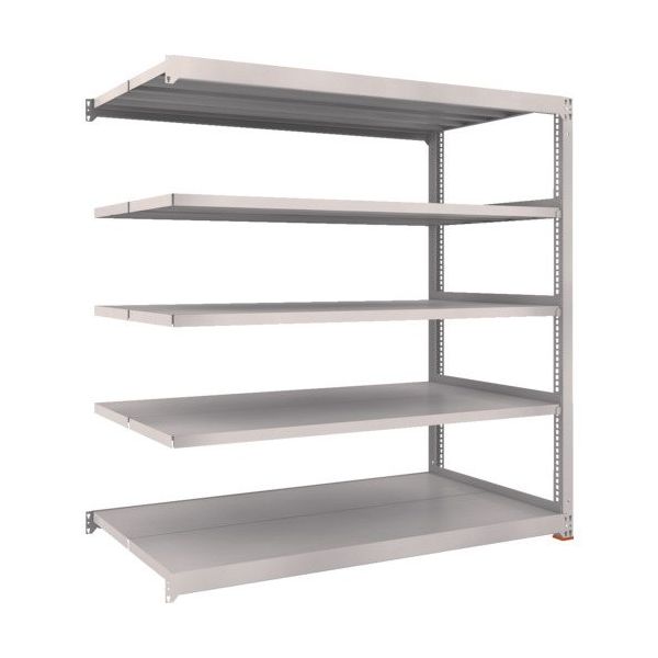 | 商品の特徴 | ●ボルトを1本も使用していないボルトレス構造で、分解・組み立て作業が簡単で、作業時間を大幅に短縮できます。●棚の段変更が、25mmピッチで、自由に調整、変更ができます。●高さ、奥行が同じであれば、増結することができます。●また、支柱を兼用することにより、コストダウンが図れます。●優れた断面構造で、荷重、横からのねじれにも強いC型形状の支柱を採用しています。●免震樹脂ベースは滑り低減による免震機能を有しており、積載物の落下リスクを低減します。 | ||