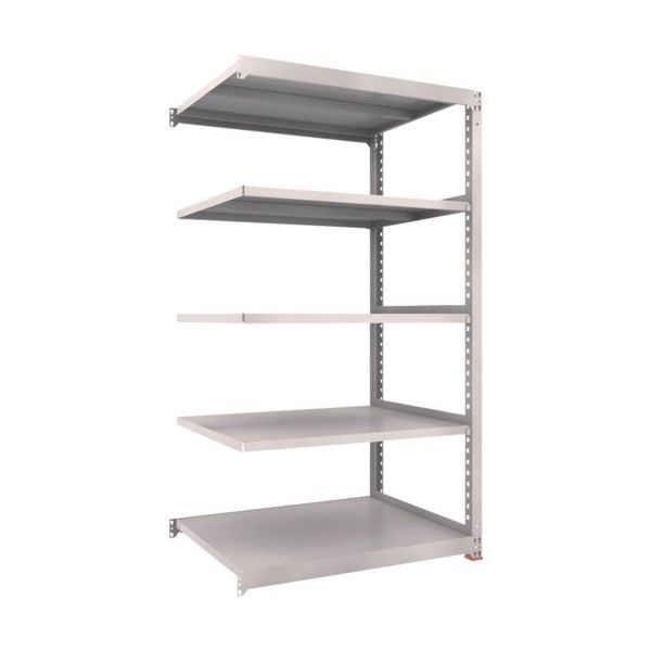 | 商品の特徴 | ●ボルトを1本も使用していないボルトレス構造で、分解・組み立て作業が簡単で、作業時間を大幅に短縮できます。●棚の段変更が、25mmピッチで、自由に調整、変更ができます。●高さ、奥行が同じであれば、増結することができます。●また、支柱を兼用することにより、コストダウンが図れます。●優れた断面構造で、荷重、横からのねじれにも強いC型形状の支柱を採用しています。●免震樹脂ベースは滑り低減による免震機能を有しており、積載物の落下リスクを低減します。 | ||