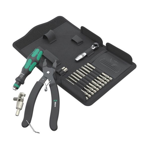 | メーカー名 | Wera Werk | 商品仕様1 | ●自転車チェーン開閉用チェーンカッターと交換可能なリベットピン付きチェーンファスナー付き。●12段変速までのシングルスピードチェーンに対応。●付属のチェーンツールセットで、チェーンの緩めと再接続が可能。●チェーンロックツールはチェーンリンクの洗浄や交換のためにロック可能なチェーンロックを簡単に開けることができます。●60本の細かい歯の構造により、動作角度がわずか6°になります。●精密作業に適用です。●狭いスペースでは、指でローレットホイールを回すことで締めることができます。●セット内容:●9532 チェーンカッターセット、 20点●1x 8001 A ビットラチェット6.35mm: 1/4×87 mm●1x 816 R ビットドライバー ラピダプタークイックリリースチャック付き: 1/4×119 mm●2x 851/4 Z プラスビット: PH 1×89 mm、 PH 2×89 mm●2x 867/4 Z トルクスビット: TX 10×89 mm、 TX 25×89 mm |