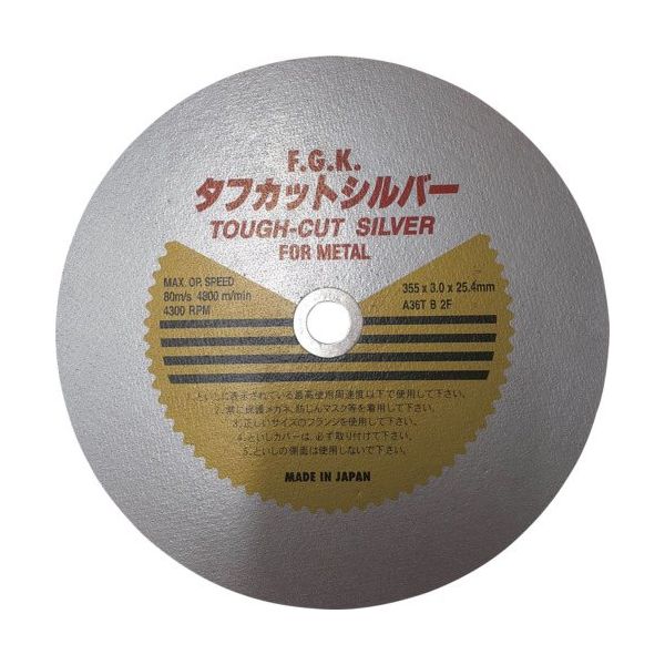 | 商品の特徴 | ●タフカットシルバーはステンレス等の難研削材をも容易に切断可能です。●薄板等の切断において画期的な威力を発揮します。●砥石をより補強する目的で特殊加工したグラスファイバーを両面に接着加工しています。●通常品と比べて5倍程度の耐摩耗性を有するため、経費の削減に極めて有効です。●1枚あたりの使用ライフが長いことから砥石の交換頻度も自ずと少なくてすみ、生産性の向上に貢献します。 | ||