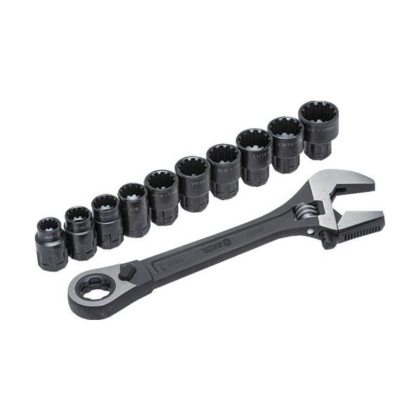 | メーカー名 | Apex Tool Group | 商品仕様1 | ●1つのソケットが6角、12角、スクエアなど複数の形状のファスナーに対応できるように設計されています。●中空設計により、長いボルトやスタッドの締め付けや緩め作業が可能です。●250mmのモンキーレンチは幅広いサイズに対応でき、従来のスパナやモンキーレンチを1つで代替できます。●視認性の高い刻印マーキングにより、サイズをすばやく識別できます。●クロムバナジウム鋼 (Cr-V) により、優れた強度と耐久性を実現できます。●黒酸化被膜仕上げにより耐腐食性があります。●全面に磨きをかけたクロム仕上げにより汚れを簡単に拭き取れ、腐食に強いです。●セット内容:●モンキーレンチ250mm●ボルテックスソケット:10 、11 、12、13、14、15、16、17、18、19mm |