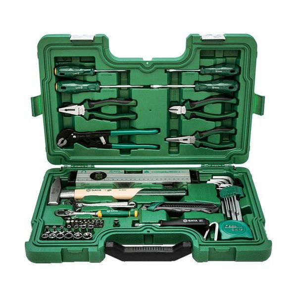 - ●建設やDIY作業で幅広く活躍する工具を厳選した56点セットです。●ギア歯数72枚・送り角度5°により、細かな送り操作ができます。●クイックリリース機能により、ボタンを押すと取り付けられたツールは簡単に外れます。●クロムバナジウム鋼 (Cr-V) により、優れた強度と耐久性を実現できます。●SATA独自設計によりナメにくいです。●保管と整理に便利な耐久性のあるツールケースが付属しております。●全面に磨きをかけたクロム仕上げにより汚れを簡単に拭き取れ、腐食に強いです。●セット内容:●72ギアラチェットハンドル :差込角6.35mm ●1/4” Dr. ビットアダプター ●ドライバーハンドル :差込角6.35mm●ディープソケット(6角): 3.5、 4、 4.5、5、 6、 7、 8、 9、 10、 11、 12、 13、 14 mm ● キーレンチセット: 1.5、 2、 2.5、 3、 4、5、 6、 8、 10 mm ●ビット:[+]#1、 #2;Hex 3、 4、 5、 6、 8 mm;[-]4、 5、 6.5 mm;トルクスT10、 T15、 T20、 T25、 T30、 T40;ポジドライブ #1、 #2●ラジオペンチ 6” ●ニッパー6” ● ペンチ7” ●ウォーターポンププライヤー 10”●[ドライバー[-]] 5x75 mm、 6x100 mm; ●[ドライバー[+]] #1x75 mm、 #2x100 mm●エンジニアハンマー 300 g ●モンキーレンチ150mm ● Tシリーズ 18 mm ソフトグリップユーティリティナイフ ●マグネット水平器30 cm ●メジャー 3 m/10” x 16 mm