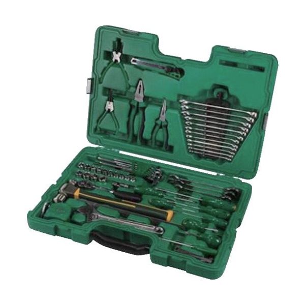 - ●一般的な整備作業から高度な修理作業まで幅広く対応できる58点セットです。●ギア歯数72枚・送り角度5°により、細かな送り操作ができます。●クイックリリース機能により、ボタンを押すと取り付けられたツールは簡単に外れます。●クロムバナジウム鋼 (Cr-V) により、優れた強度と耐久性を実現できます。●SATA独自設計によりナメにくいです。●保管と整理に便利な耐久性のあるツールケースが付属しております。●全面に磨きをかけたクロム仕上げにより汚れを簡単に拭き取れ、腐食に強いです。●セット内容:●72ギアラチェットハンドル:差込角9.5mm、6角ソケット6、 7、 8、 9、 10、 11、 12、 13、 14、 15、 16、 17、 18、 19 mm●ボールポイント六角棒レンチセット 1.5、 2、 2.5、 3、 4、 5、 6、 8、 10 mm、コンビネーションレンチ 8、 10、 11、 12、 13、 14、 15、 16、 18、 19 mm●コンビネーションラチェットレンチ 17 mm、[ドライバー[-]] 6x38mm、 3.2x75mm、 5x100mm、[ドライバー[+]] #2x38mm、 #0x75mm、 #1x100mm、 #2x150mm、ペンチ 200mm、ラジオペンチ 160mm、スナップリングプライヤーセット、メジャー 3mx16mm、23 pc. 隙間ゲージセット 0.02mm-1mm、ストレートスチール定規 150mm、ボールピンハンマー 16oz/454g、●マグネットピックアップツール、スナップオフナイフ●アルミ合金製懐中電灯(単三電池2本付き)、ユニバーサルジョイント