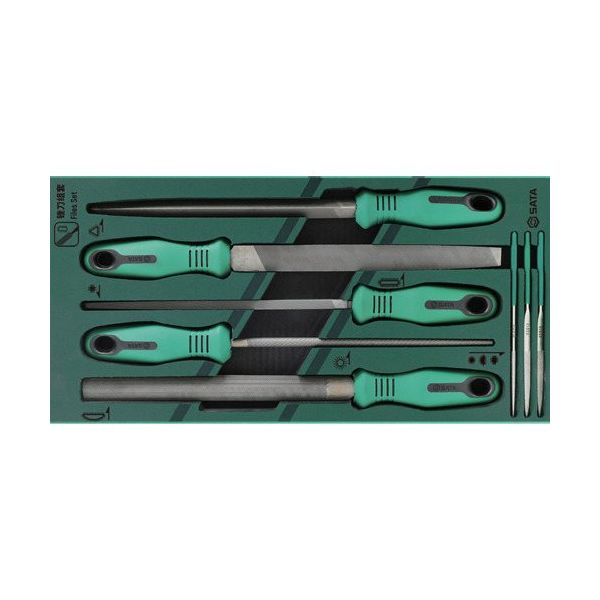 | メーカー名 | Apex Tool Group | 商品仕様1 | ●様々な素材や作業に対応する8種類のヤスリをセット化しました。●整理整頓しやすい専用トレーで、作業場や工具箱の収納にも最適です。●滑りにくい快適なハンドルで長時間作業にも適した設計です。●保管と整理に便利な耐久性のあるツールケースが付属しております。●キャビネットに自由に組み合わせ可能です。●SATA独自設計によりナメにくいです。●全面に磨きをかけたクロム仕上げにより汚れを簡単に拭き取れ、腐食に強いです。●セット内容:●やすり(全長315mm・中目)●平:刃長200mm、幅20×厚み5mm●半丸:刃長200mm、幅19×厚み6mm●丸:刃長200mm、φ7.5●角:刃長200mm、幅8×厚み8mm |
