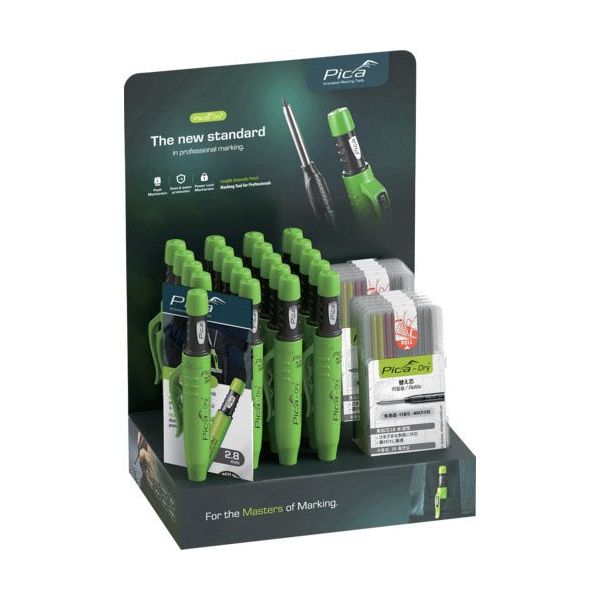 | 商品の特徴 | ●3030(20本)と専用替え芯(4020SB03)がセットで店舗に陳列できます。●セット内容:●建築用シャープペンシル:3030(20本)、替え芯赤黄(各2本)黒2B(4本):4020(10PK)、リーフレット | ||