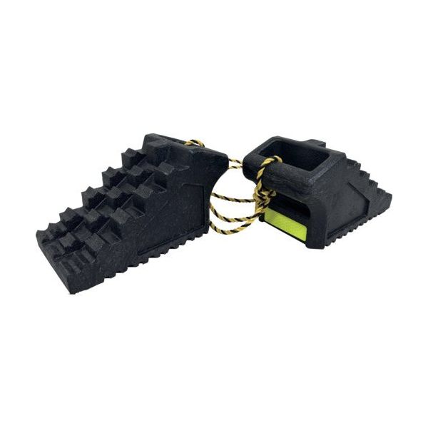 | 商品の特徴 | ●再生プラスチックを100%使用した環境対策商品です。●2個1組●ゆるやかな斜面や平地での車止めに最適です。●本体背面には夜間の視認性に優れた高輝度反射テープ付きです。●取り扱いに便利なトラロープ(φ6×2m)付きです。●本体底面には滑り止めゴムがインサートされています。●セット内容:●トラロープ(φ6×2m) | ||