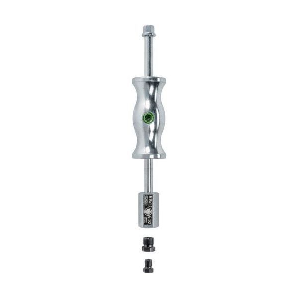 | 商品の特徴 | ●カウンターステイやプーラーを使うための支持面がない場合でも引き抜きが出来ます。●ウェイト内部がくり抜かれておりストロークを最大限確保しています。●スペースがない時にはウェイト部を反転させてストロークを短くできます。●内抜きエキストラクターと接続して使用することでベアリングを確実に安全に引き抜き出来ます。●スピンドル先端にアダプタがついており2種のエキストラクターねじサイズに対応しています。 | ||