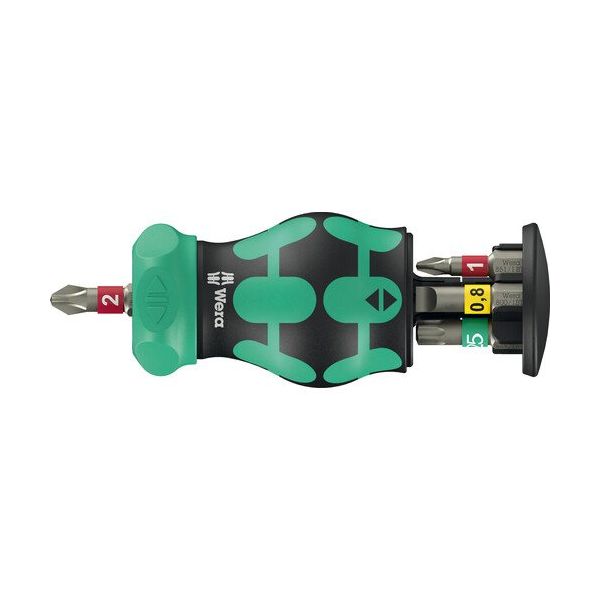 | メーカー名 | Wera Werk | 商品仕様1 | ●革新的なラチェット機構により作業効率が向上します。●ネジの引っ掛かりが全く無い場合でも早回しが可能です。●スイッチを中心に合わせるとラチェット機構をロックすることができます。●Take it easy 色分けシステムによって瞬時にビットの形状とサイズを識別することができます。●ピーク荷重時の運動エネルギーを分散し、ビット先端がねじれるのを防ぐBiTorsionビットが本体内部に6本収納されています。●回転式ビットマガジンにより、様々な状況下でビットを簡単に取り外すことができ、紛失を防止することが可能です。●セット内容:●851/1 BTZ (1x PH 1x25; 1x PH 2x25), 867/1 TORX BTZ (1x TX 15x25; 1x TX 20x25; 1x TX 25x25), 800/1 BTZ (1x 0,8x5,5x25) |