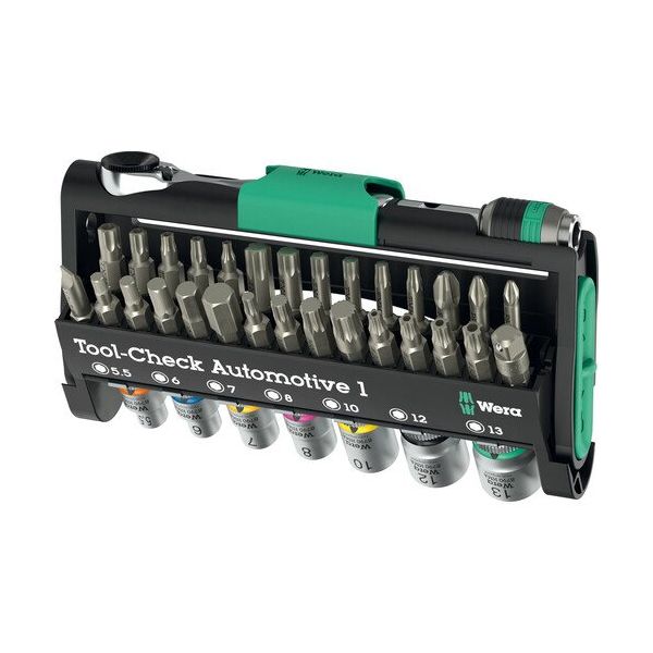 | メーカー名 | Wera Werk | 商品仕様1 | ●自動車メンテナンス用ツールセットです。●極めてコンパクトなケースに38点ものツール、ソケット、ビットが収納されており、手動および電動工具に使用することが可能です。●Kraftform ビットホルダー、Zyklop Mini ビットラチェット、ラピダプターホルダーが収納されており、多種多様な状況下でのネジ回しが可能です。●緑のロック部がツールを固定し快適な運搬とツールの紛失防止を実現します。●ピーク荷重時の運動エネルギーを分散し、ビット先端がねじれるのを防ぐBiTorsionビットが収納されています。●870/1 アダプターを使用すると1/4インチ ソケットを使用できます。●Take it easy 色分けシステムによって瞬時にビットの形状とサイズを識別することができます。●セット内容:●1 x PH 1x25; 1 x PH 2x25; 1 x PH 3x25; 1 x TX 10x25; 1 x TX 15x25; 1 x TX 20x25; 1 x TX 25x25; 1 x TX 30x25; 1 x TX 40x25; 1 x TX 10x25; 1 x TX 15x25; 1 x TX 20x25; 1 x TX 25x25; 1 x TX 30x25; 1 x 1.0x5.5x25; 1 x 3.0x25; 1 x 4.0x25; 1 x 5.0x25; 1 x 6.0x25; 1 x 8.0x25; 1 x 20x25; 1 x 25; 1 x 27x25; 1 x 30x25; 1 x M 4x25; 1 x M 5x25; 1 x M 6x25; 1 x M 8x25; 1 x 5.5x23.0; 1 x 6.0x23.0; 1 x 7.0x23.0; 1 x 8.0x23.0; 1 x 10.0x23.0; 1 x 12.0x23.0; 1 x 13.0x23.0● 38点● 1x 8001 A ビットラチェット6.35mm: 1/4 inch x 87 mm● 1x 889/4/1 K ラピダプター 汎用 ビットホルダー ストロング磁石: 1/4 inch x 50 mm● 1x 870/1 アダプター: 1/4 inch x 25 mm |