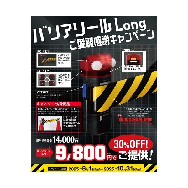 | 材質/仕上 | 本体:ABS樹脂・シート:ポイリエチレン | 用途 | 夜間や暗所での規制や危険区域への立入制限に。 |