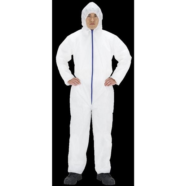●軽作業および来客者用に適した不織布製つなぎ服です。●パーツ毎の寸法を見直し、ゆとりのあるサイズ感で動きやすさを改善しました。●身体の動きに合わせた設計で快適な作業性を実現します。●フード後頭部に十字ゴムを縫製、フードが顔にかかりにくくなり作業時の視界を確保しました。●衛生区域への入室時に粘着ローラーを安心して使えるラベルレスです。●ファスナーは廃棄しやすいプラスチック製、異物混入対策に適したブルーカラーです。●軽くやわらかな通気性に優れたスパンボンド1層構造でヒートストレスを軽減します。●フード、ウエスト、ソデ、スソ部分は埃が入りにくい伸縮性があるゴムタイプです。