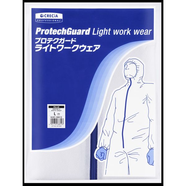 | 商品仕様1 | ●軽作業および来客者用に適した不織布製つなぎ服です。●パーツ毎の寸法を見直し、ゆとりのあるサイズ感で動きやすさを改善しました。●身体の動きに合わせた設計で快適な作業性を実現します。●フード後頭部に十字ゴムを縫製、フードが顔にかかりにくくなり作業時の視界を確保しました。●衛生区域への入室時に粘着ローラーを安心して使えるラベルレスです。●ファスナーは廃棄しやすいプラスチック製、異物混入対策に適したブルーカラーです。●軽くやわらかな通気性に優れたスパンボンド1層構造でヒートストレスを軽減します。●フード、ウエスト、ソデ、スソ部分は埃が入りにくい伸縮性があるゴムタイプです。 | サイズ | L |