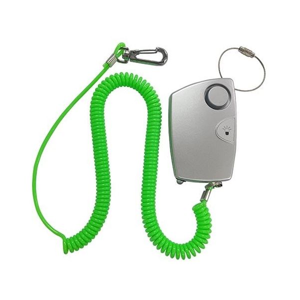 | 商品の特徴 | ●ひったくり、鞄の置き忘れの防止に!コイルロープ側を自分の服のベルト通しなどに取付け、ブザー本体を鞄にセットしておくと、鞄と離れた際にコイルロープが伸びきるとピンが抜けて、ブザーが鳴り響くとともに白色LEDライトが点滅し、音と光で知らせます。●ライトスイッチを押すと白色LEDが点滅します。●雨の日でも安心な防水構造。●(公財)全国防犯協会連合会推奨(第17H211号) | ||