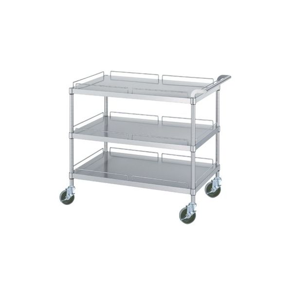 | 商品の特徴 | ●静止均等荷重50kg/段最大80kg/台●組立式●ステンレスワゴン●SUS430No.4仕上げ●ガード付棚3段●(W)750×(D)600×(H)800●φ25mmパイプを採用したスマートなステンレスワゴンです。 | ||