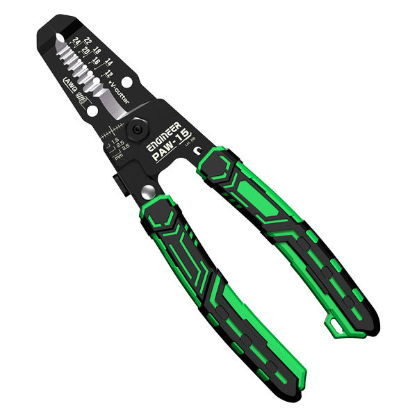| メーカー名 | エンジニア | 商品仕様 | ●全長(mm):161●重量(g):109●対応サイズ:AWG24・22・20・18・16・14・12●グリップ幅(mm):51●刃長(mm):10●材質:炭素鋼(本体)/エラストマー(グリップ) |