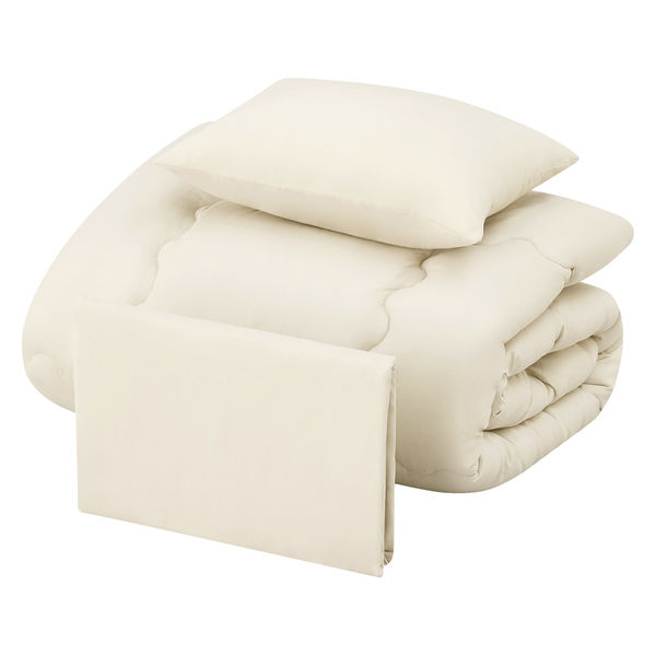 | 商品の特徴 | 掛け布団はキルティング加工を施し、中綿の偏りを防いであたたかさや形状を保ちます。ボックスシーツは全周にゴムがついているので、ずれにくくなっています。着脱が簡単に行えます。枕は後頭部から首筋までふんわりやさしく包み込みます。ご自宅の洗濯機で洗えます(洗濯ネットの使用をおすすめします)。家庭用の乾燥機対応です。ピーチスキン加工で柔らかくなめらかな肌触りです。低ホルムアルデヒドで、安心の品質です。収納や持ち運びに便利なバッグ付きです。圧縮梱包してあるので、持ち帰りや搬入が簡単です。 | ||